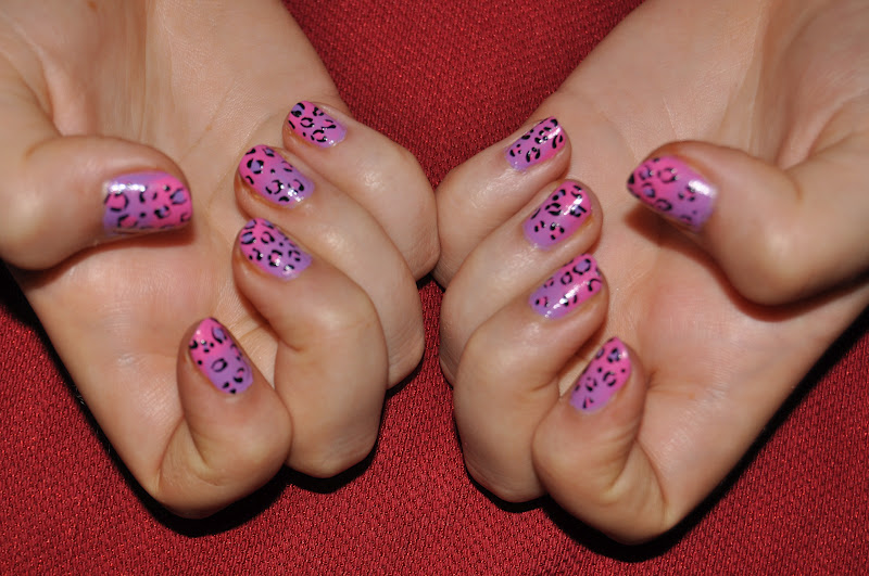This is a post about two pieces of nail art that I have done over the past three days. That's the good thing about coming home, I get to do my sister and my mum's (rarely!) nails :). For my sister I gave her a purple and pink gradient, of course it had to be pink :P it does look good though....and then leopard print over the top :) I really love this especially on her short nails so if you have shorter nails you should totally try this!